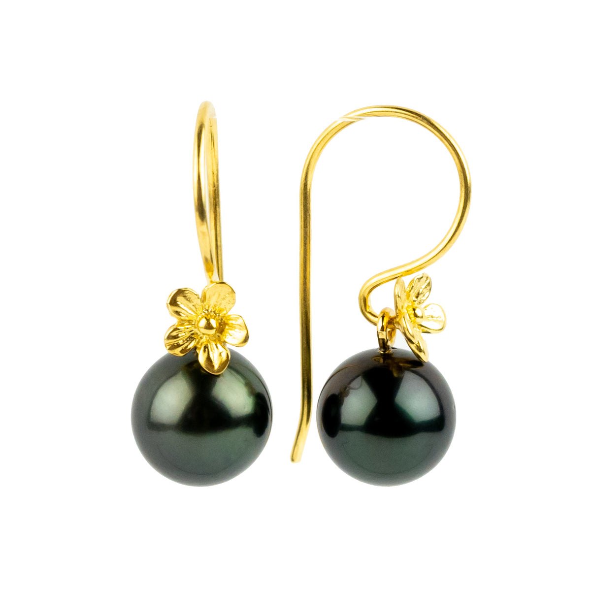 Midnight Green Tahitian Pearl Hibiscus Hook Earrings