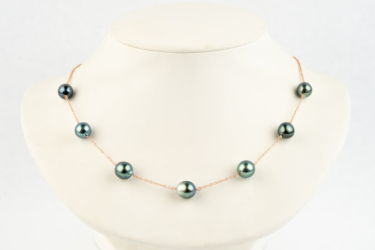 Heavenly Blue Baroque Tin-Cup Tahitian Pearl Necklace on 14K Rose Gold