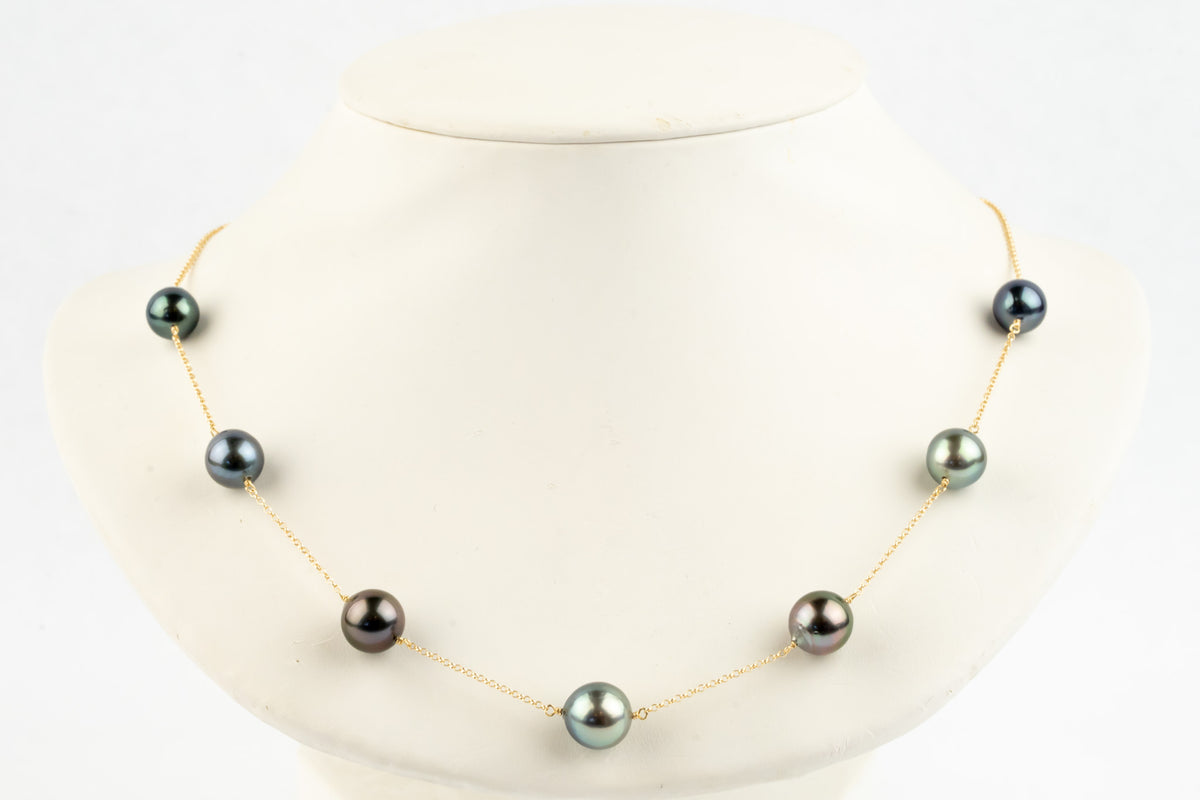Shimmery Multi-Color Tin-Cup Tahitian Pearl Necklace on 14/20 Gold Filled