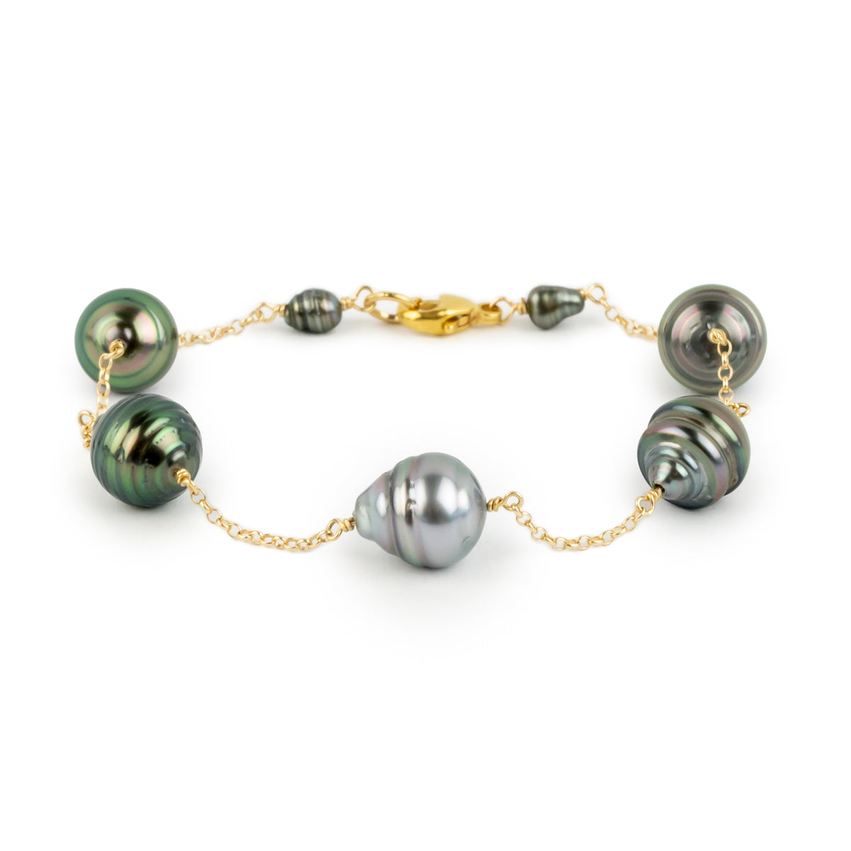 Five Flash Tahitian Pearl Tin Cup Bracelet on 14K Yellow Gold