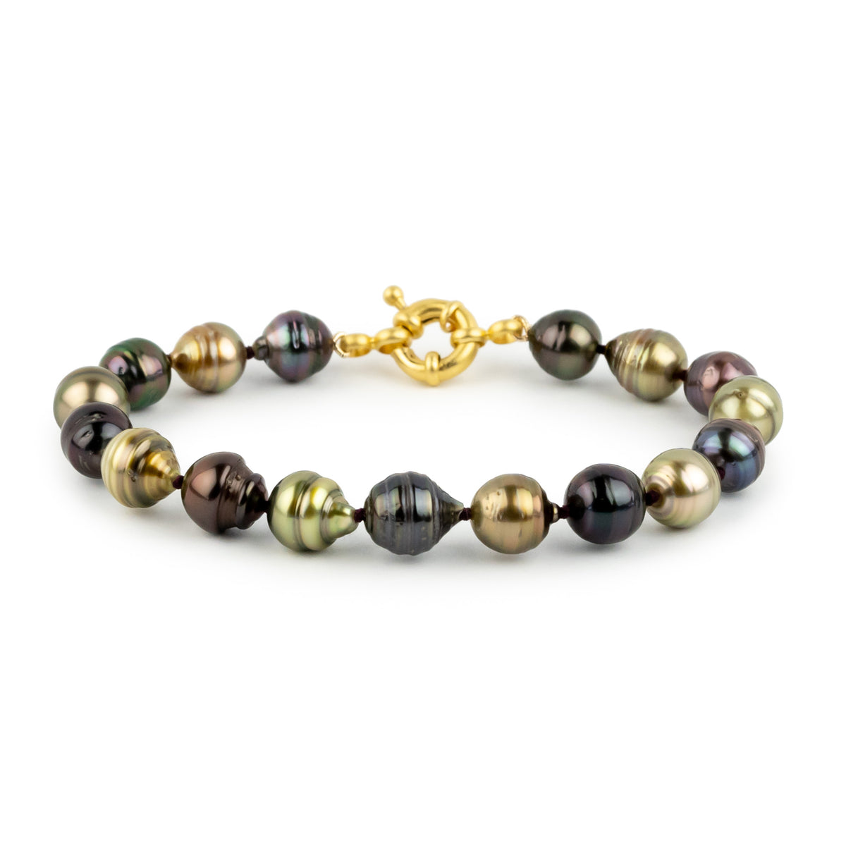 Harlequin Green 7.5-8.9mm Circled Tahitian Pearl Bracelet