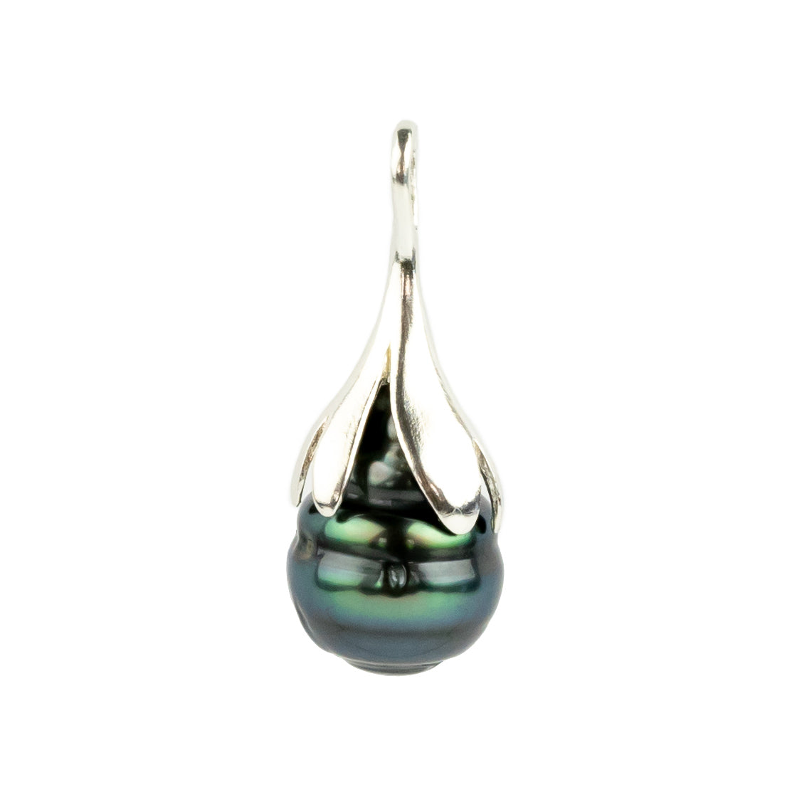 Ocean Blue 9.2mm Circled Drop Tahitian Pearl Pendant on Sterling Silver