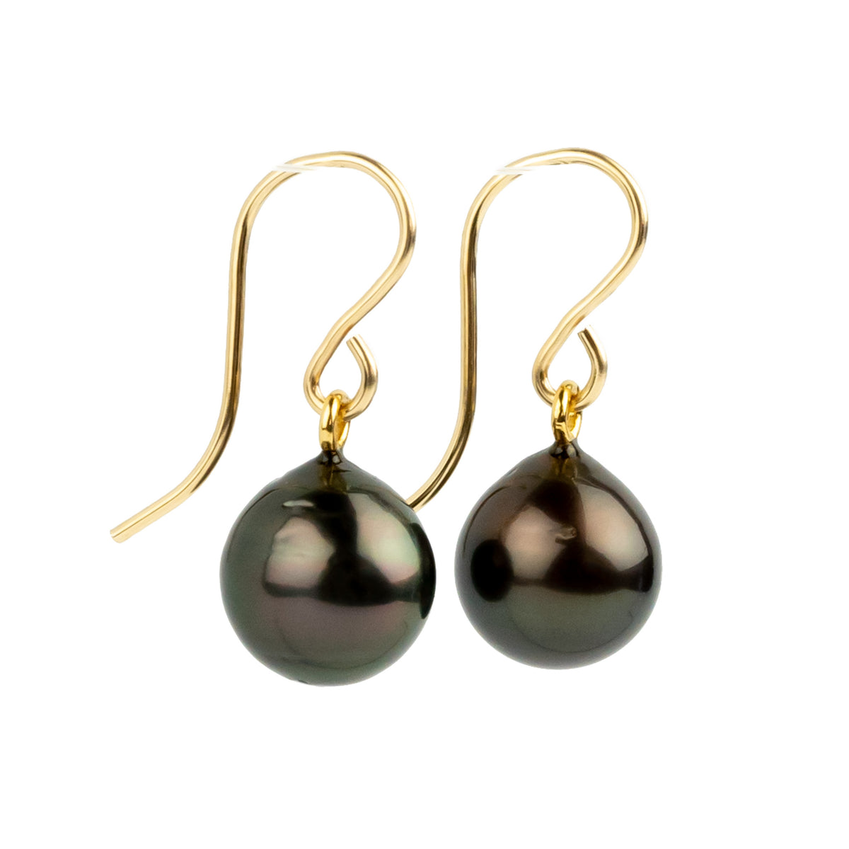 Plum Green Tahitian Pearl Dangles on Gold-Filled