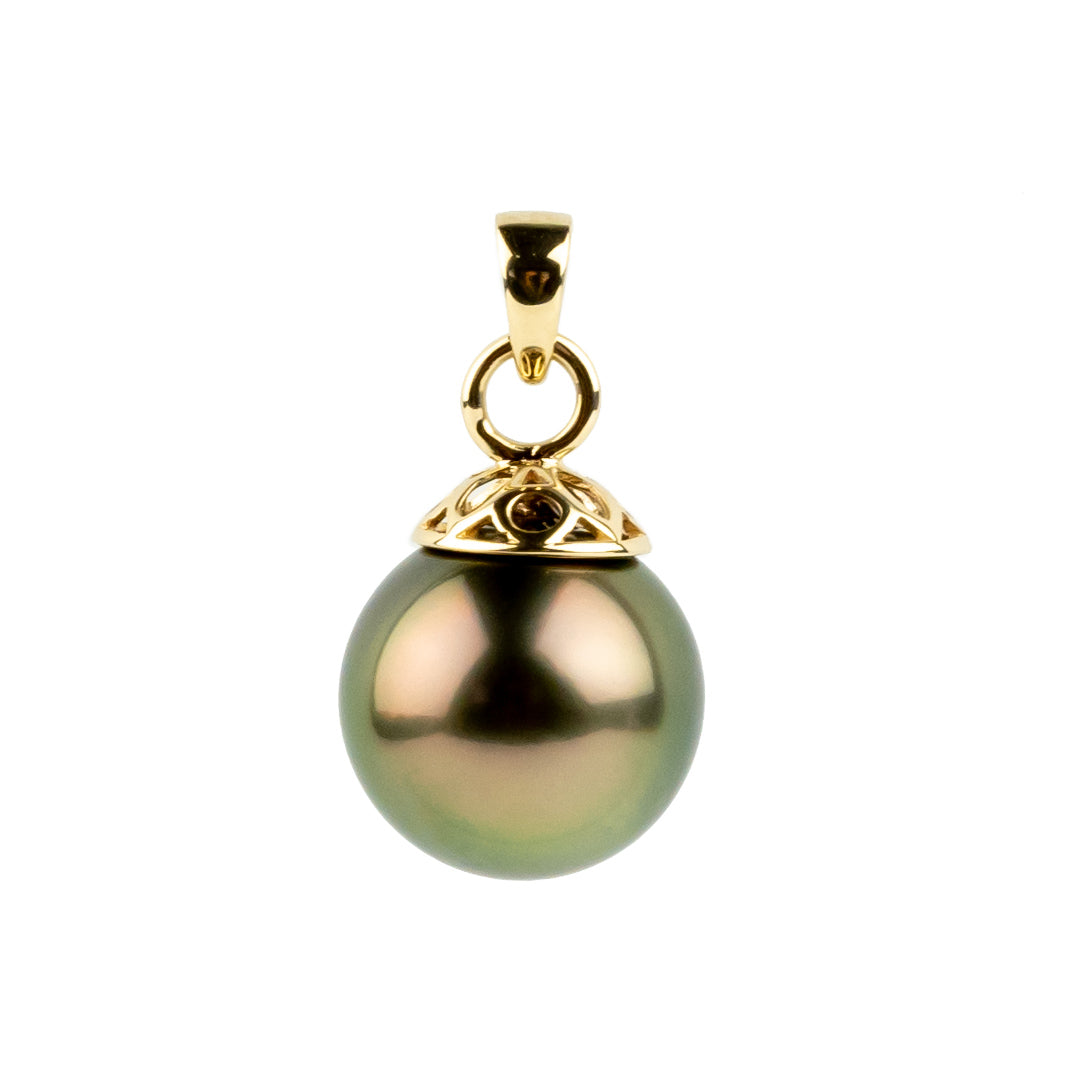 Coppery Aubergine Green 10.2mm Tahitian Pearl Filigree Pendant