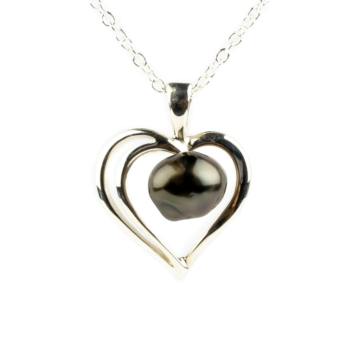 Dark Forest Green 10.7mm Tahitian Pearl Filigree Pendant