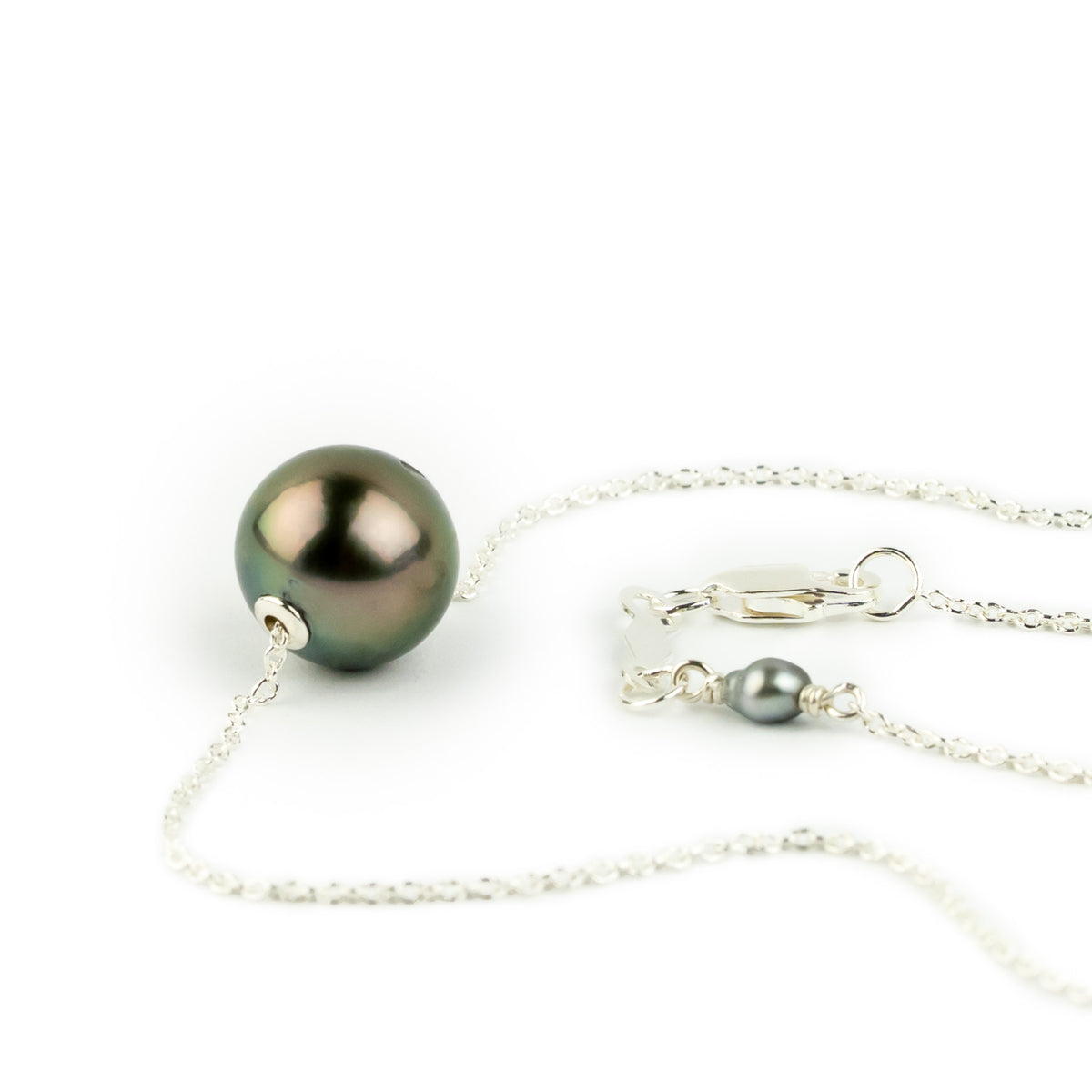 Pink Green 9mm Tahitian Pearl I'a Necklace on Sterling Silver