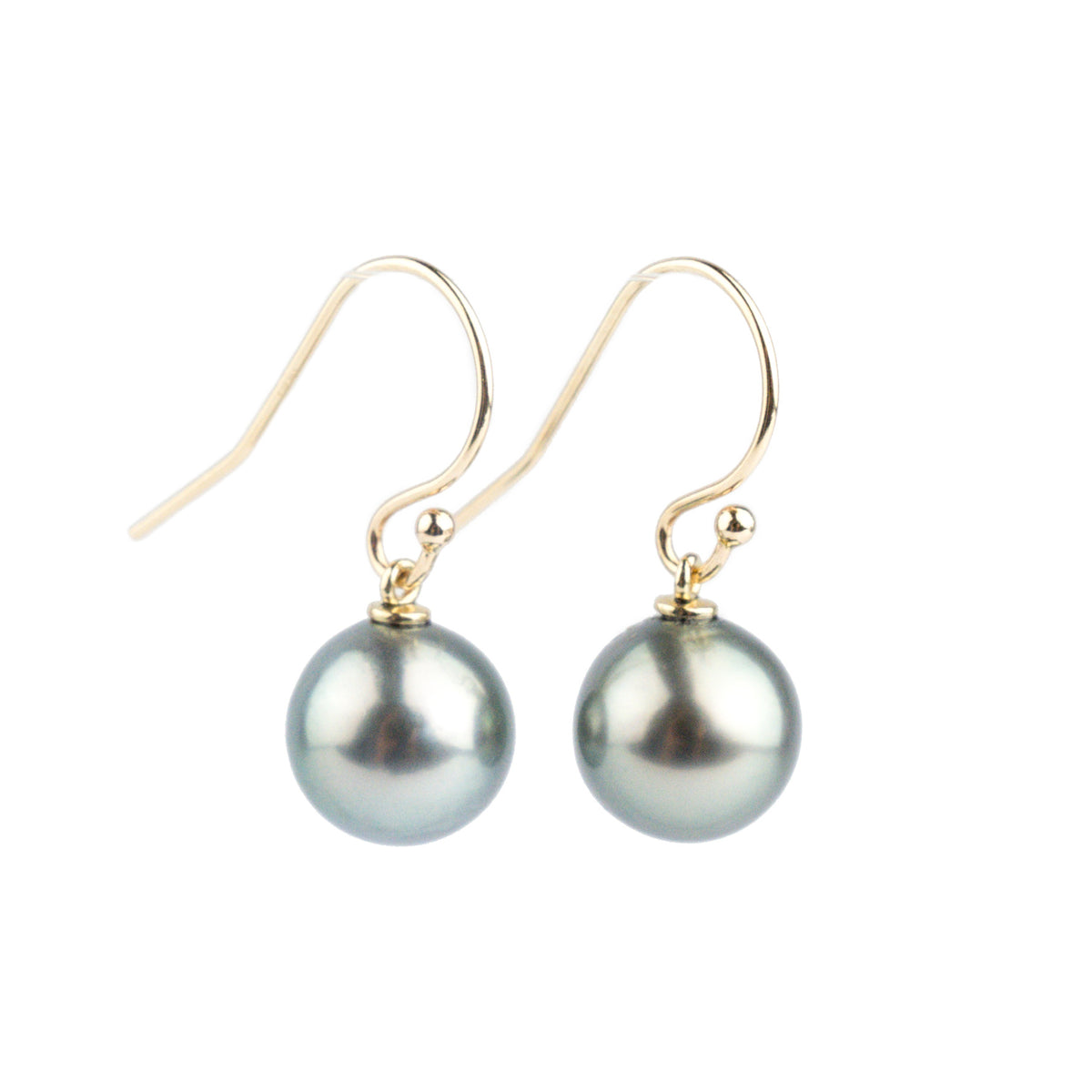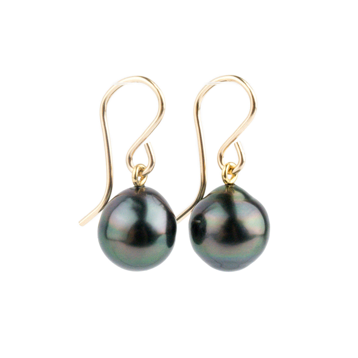 Dark Rainbow Baroque Tahitian Pearl Dangles on Gold-Filled
