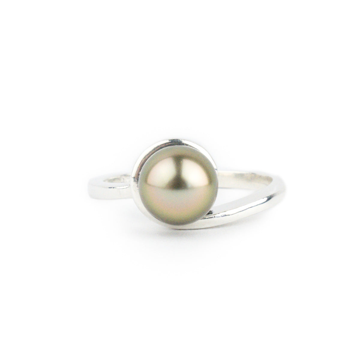 Golden Pink Green 7.6mm Tahitian Pearl Swirl Ring on Sterling Silver