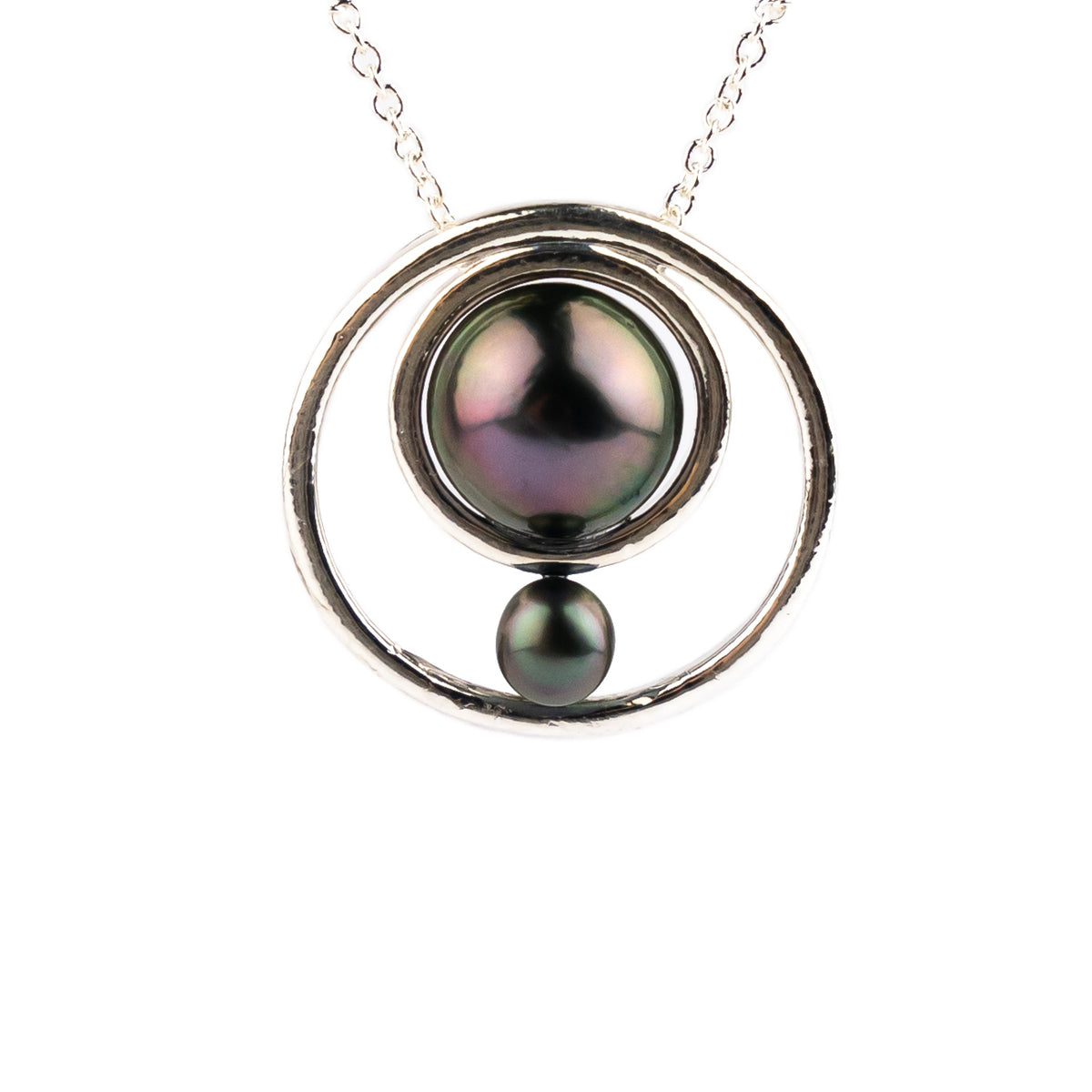 Aubergine Peacock 9.2mm Tahitian Pearl I'a Necklace on Sterling Silver