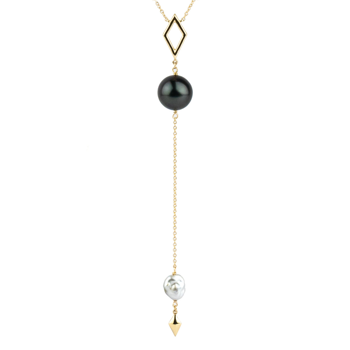 Tahitian Pearl & Keshi Chain Geometric Dangle Necklace on 14K Gold