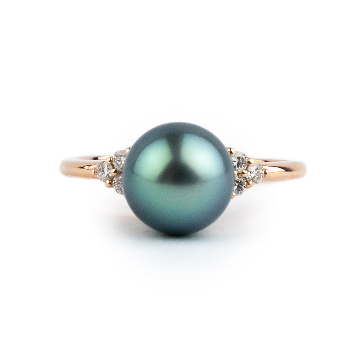 Tahitian Pearl & Diamond Toru Ring on 14K Rose Gold