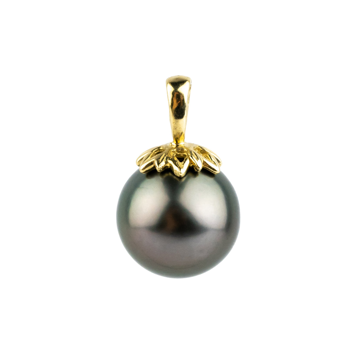 Tahitian Pearl & Diamond 13.2mm Maia Pendant on 14K Yellow Gold