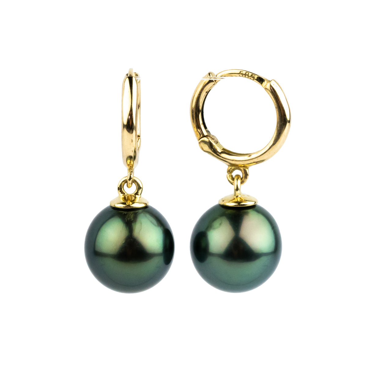 Mystic Green Tahitian Pearl Huggie Hoop Earrings