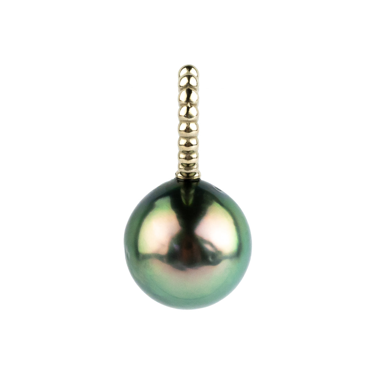 Golden Green 9.7mm Beaded Tahitian Pearl Pendant on 14K Yellow Gold