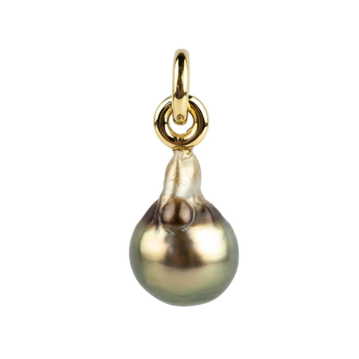 Tropical Green 10.5mm Tahitian Pearl Pendant on 18K Yellow Gold