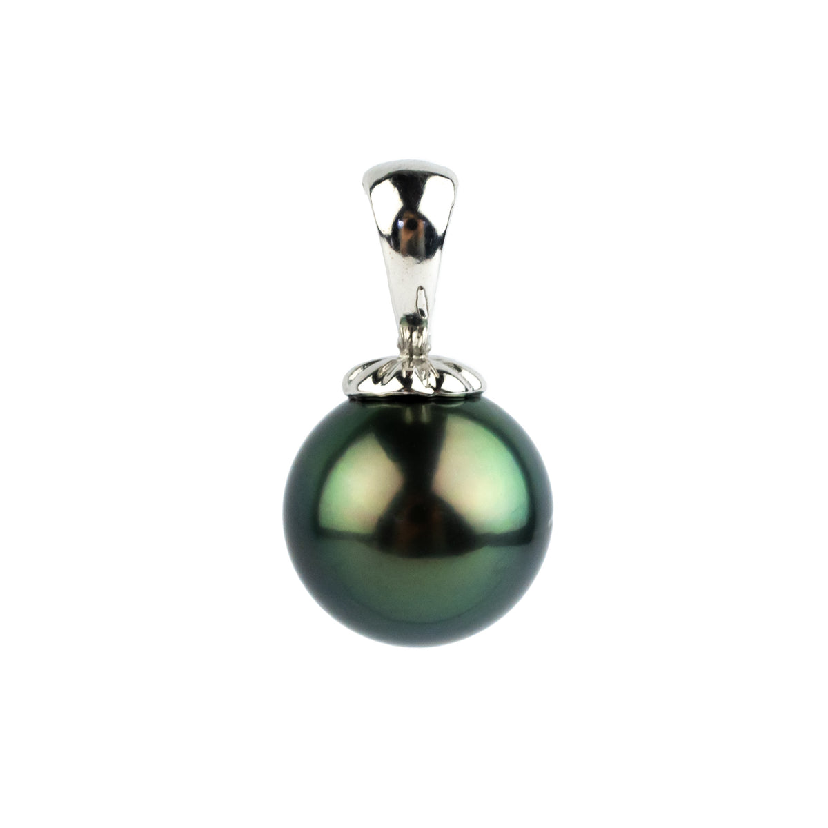 Deep Peacock Green 10.4mm Tahitian Pearl Pendant on 14K White Gold