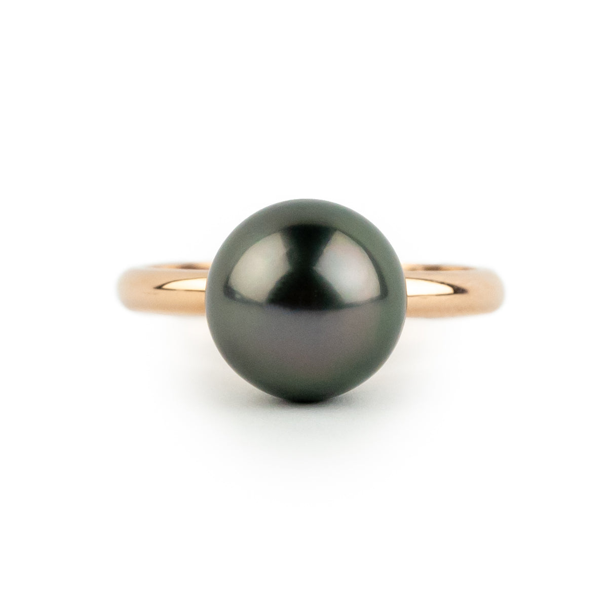 Glorious Green 10.3mm Tahitian Pearl Ring on 14k Rose Gold