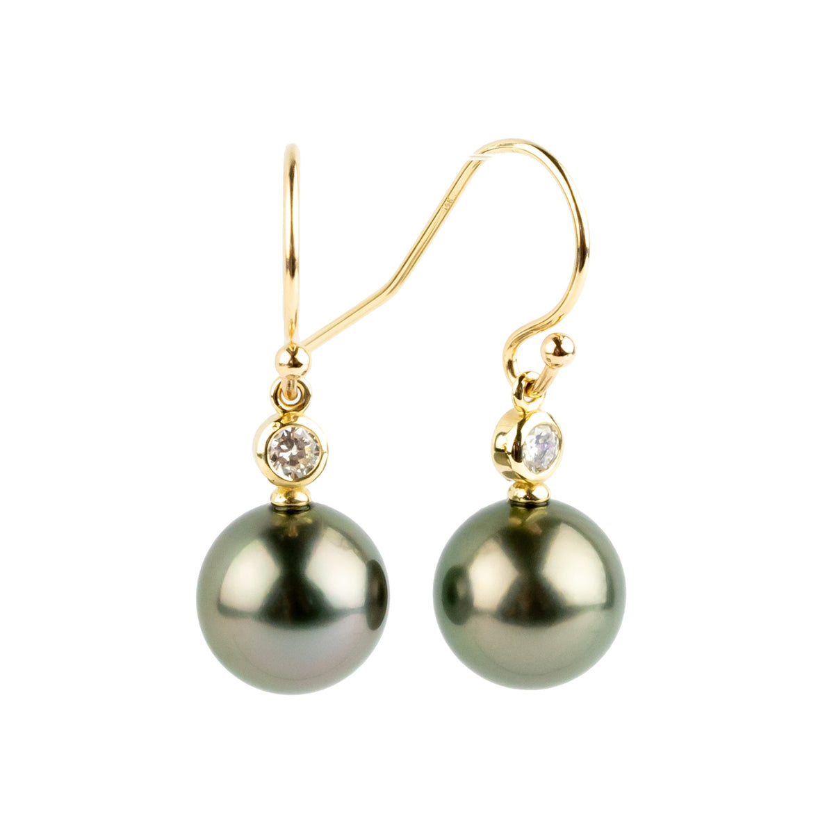 Tahitian Pearl & Diamond Aurora French Hook Earrings on 14K Yellow Gold
