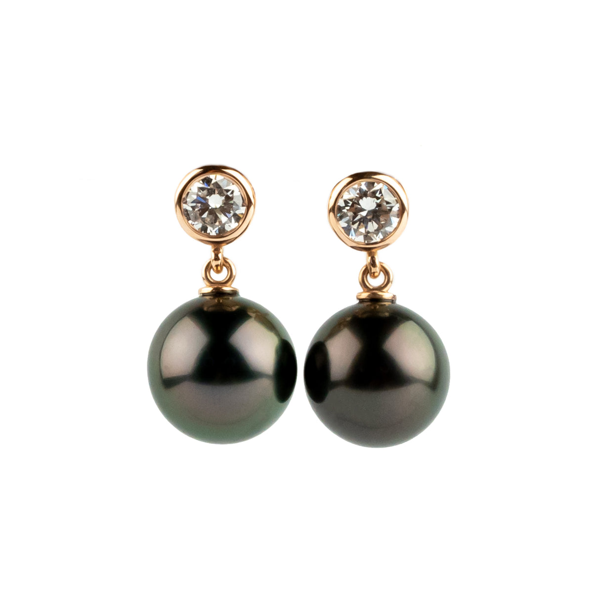 Tahitian Pearl & Diamond Nova Earrings on 14K Rose Gold