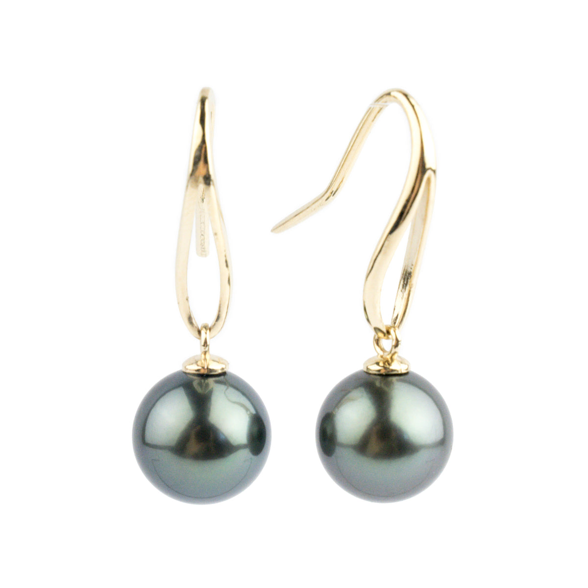 Dark Peacock Tahitian Pearl 18K Gold Balinese Earrings