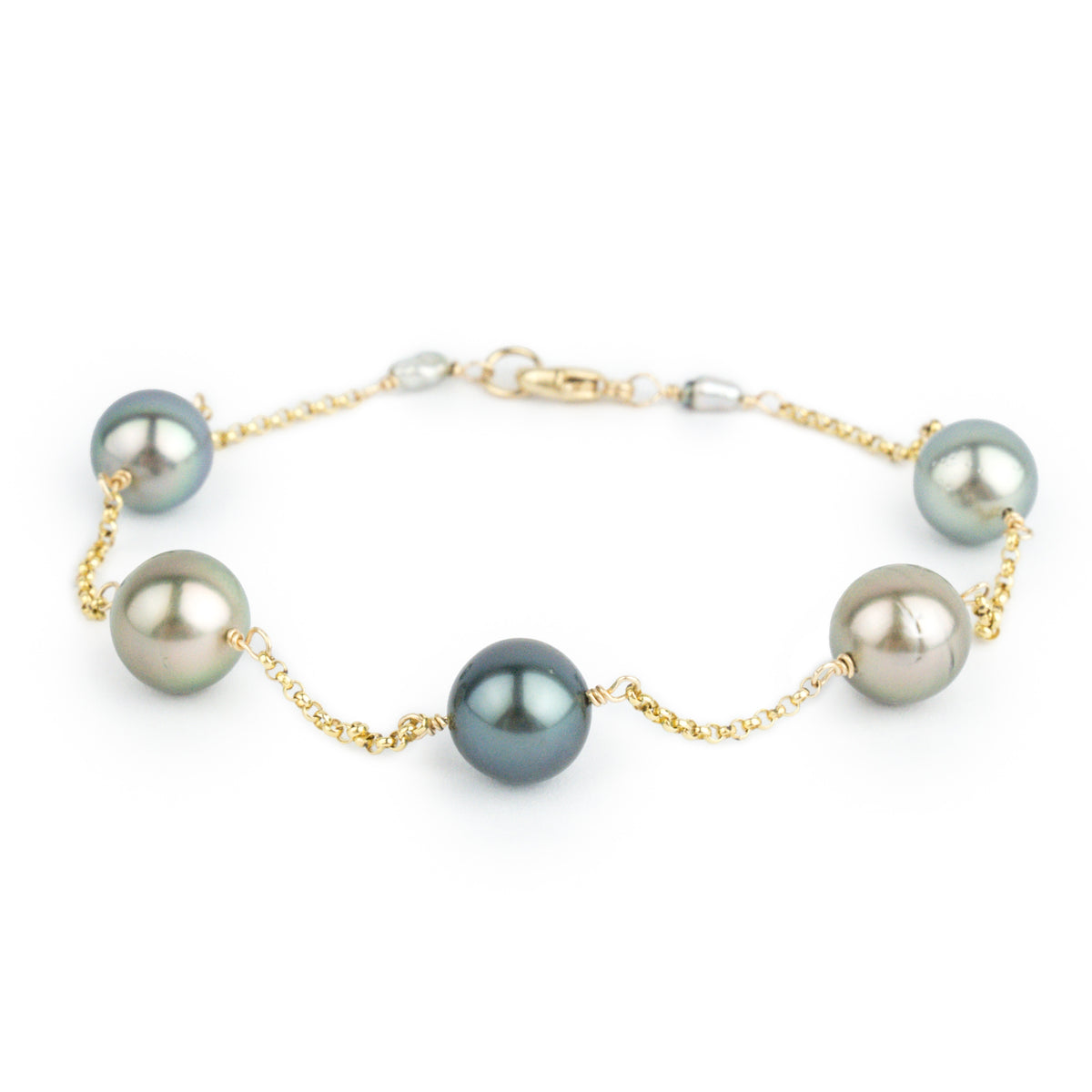 Myriad Greens Circled 8.9-10mm Tahitian Pearl Bracelet