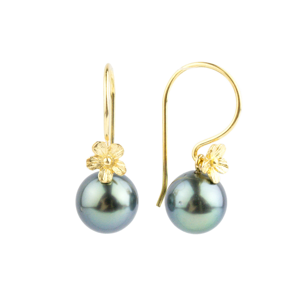 Bright Blue Tahitian Pearl Hibiscus Hook Earrings