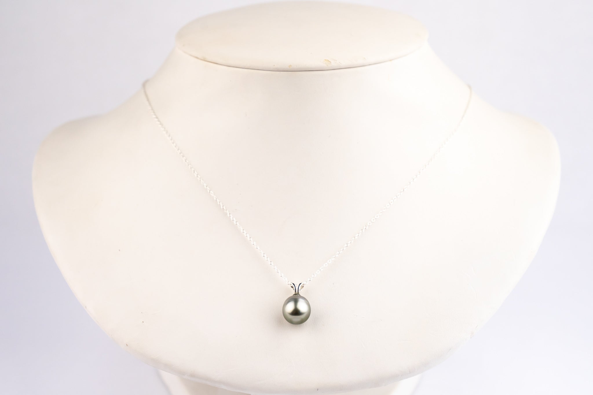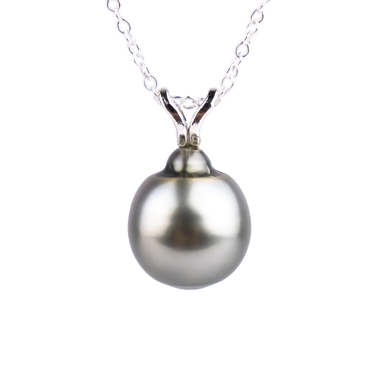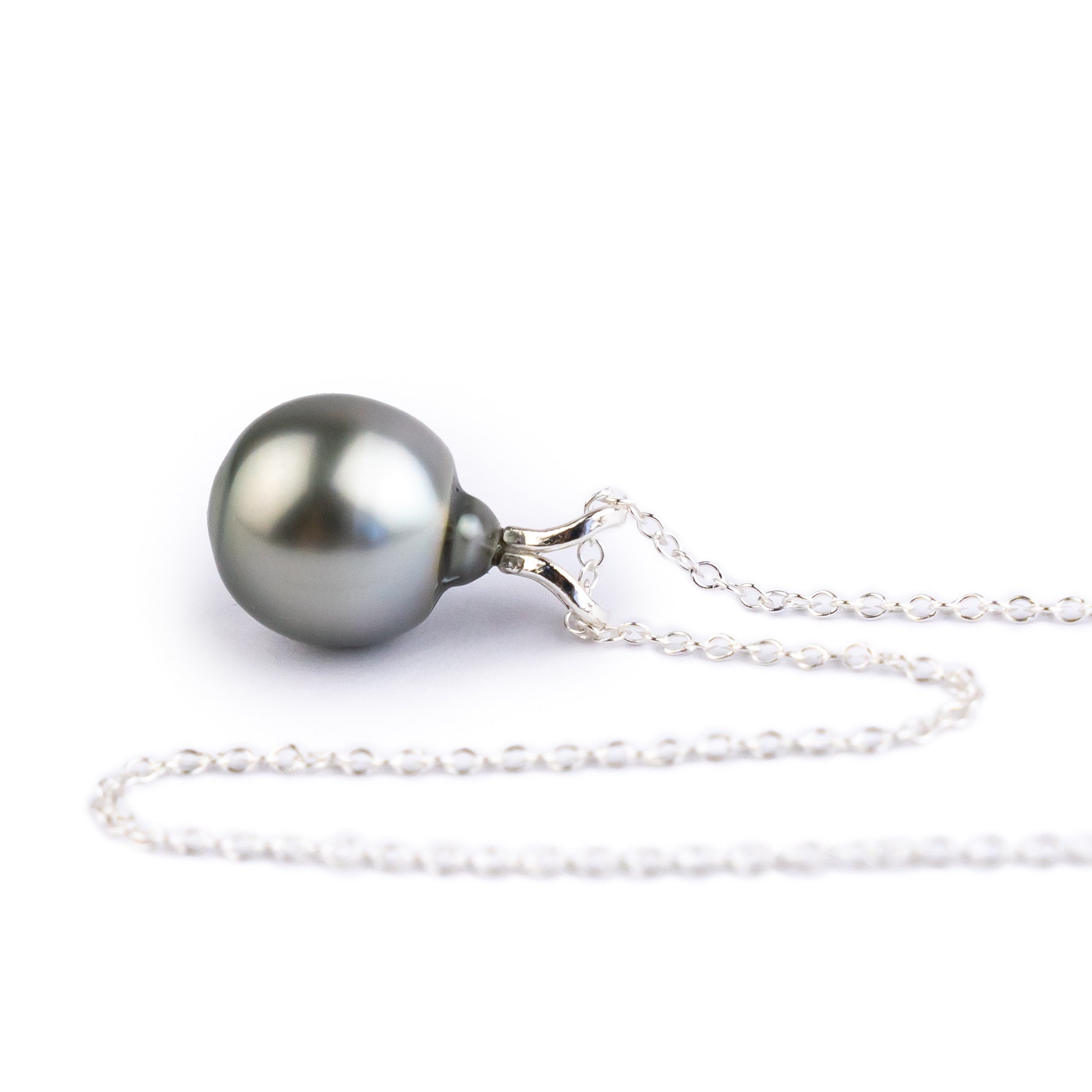 Dark Silvery 9.3mm Tahitian Pearl I'a Necklace on Sterling Silver
