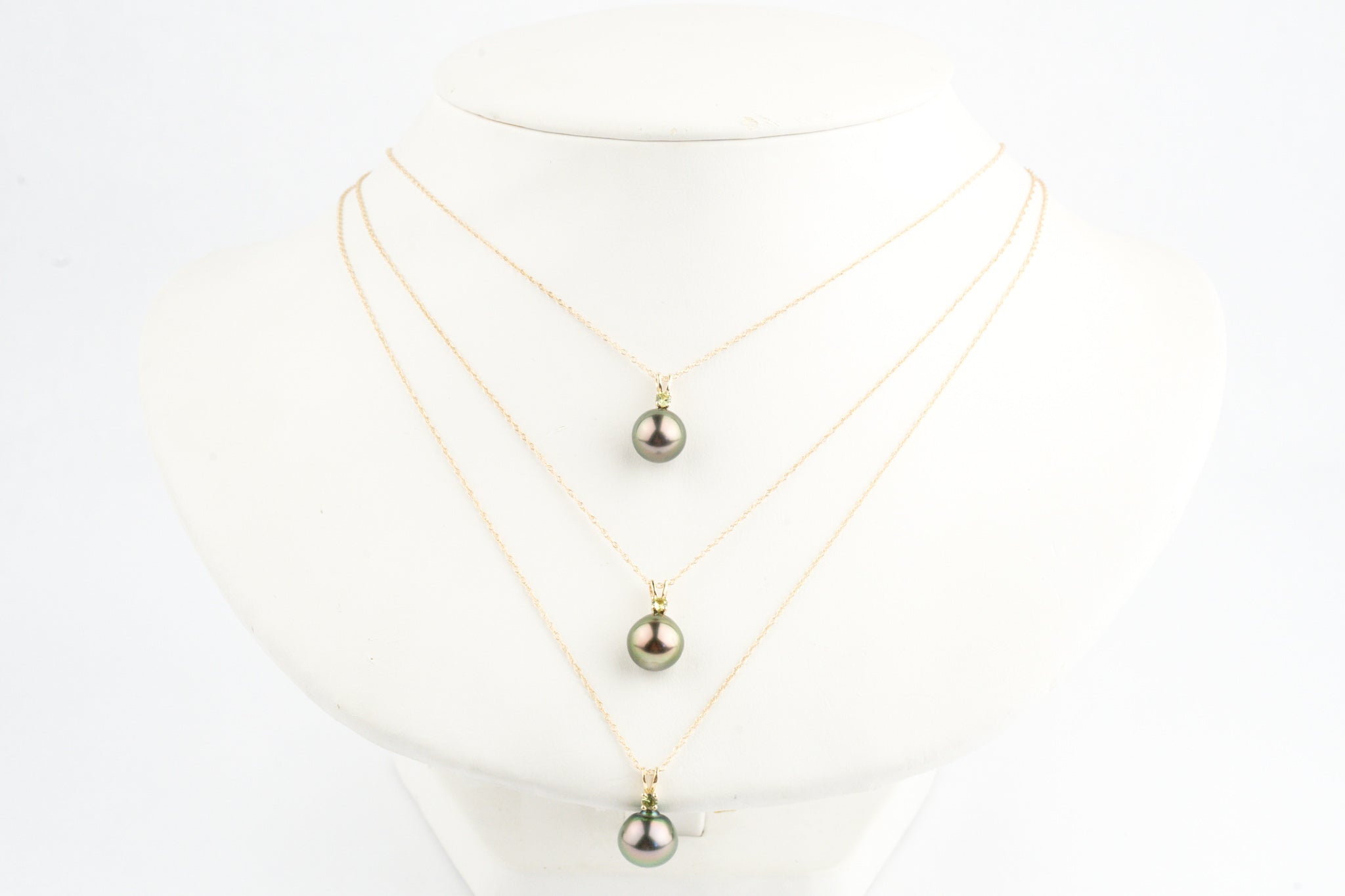 Tahitian Pearl & Peridot Aubergine Green Étoile Necklace on 10K Gold