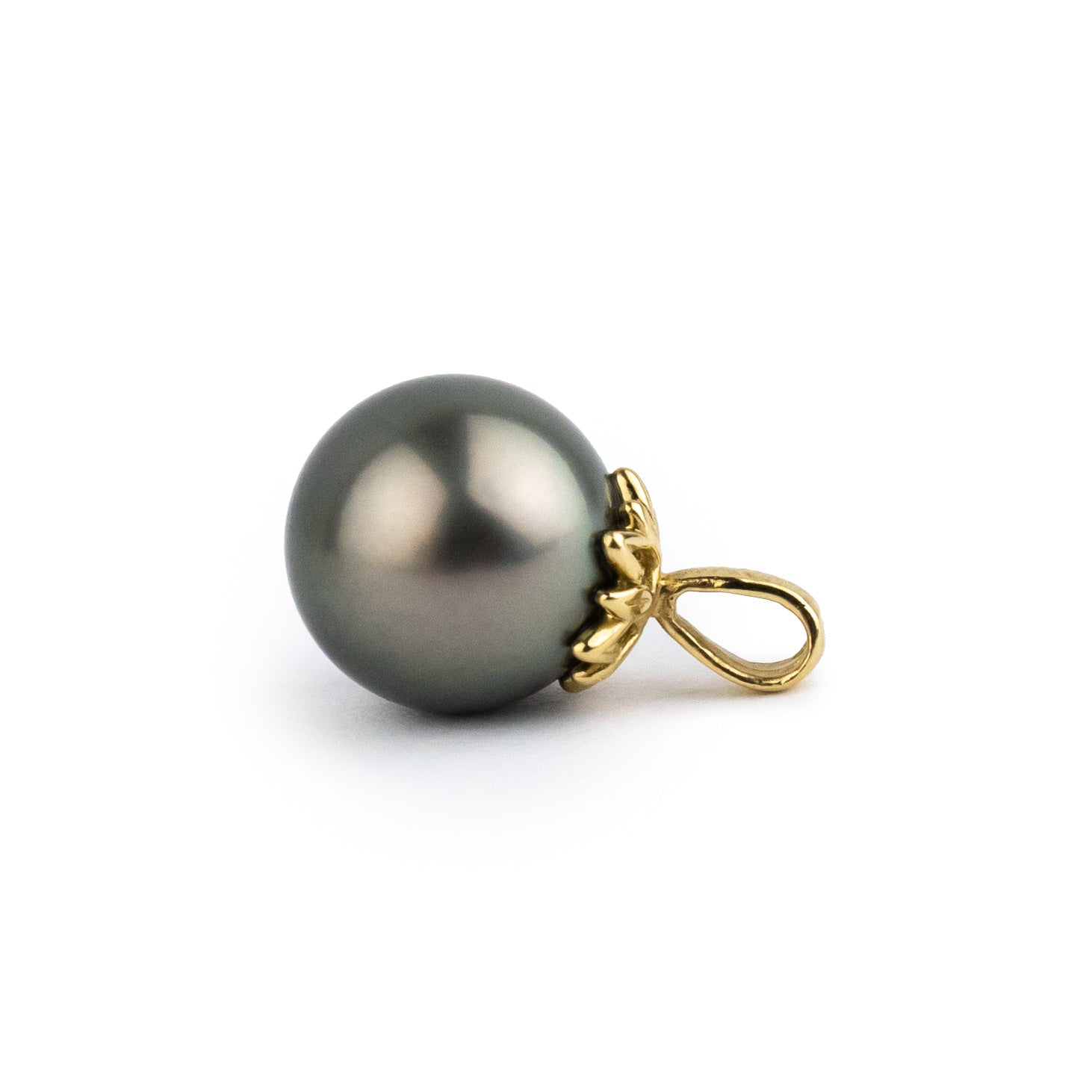 Light Green 10.1mm Tahitian Pearl Marguerite Pendant on 14K Yellow Gold