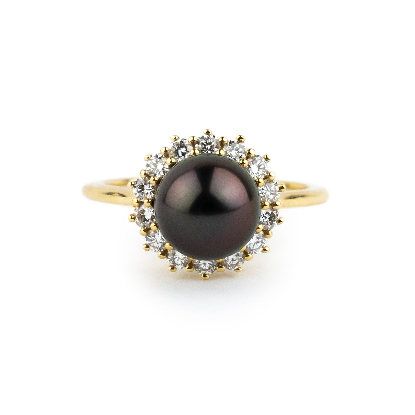 This sublime, one-of-a-kind, deep plum, 8.6mm Tahitian pearl is set on a starry halo of lab-grown diamonds.
