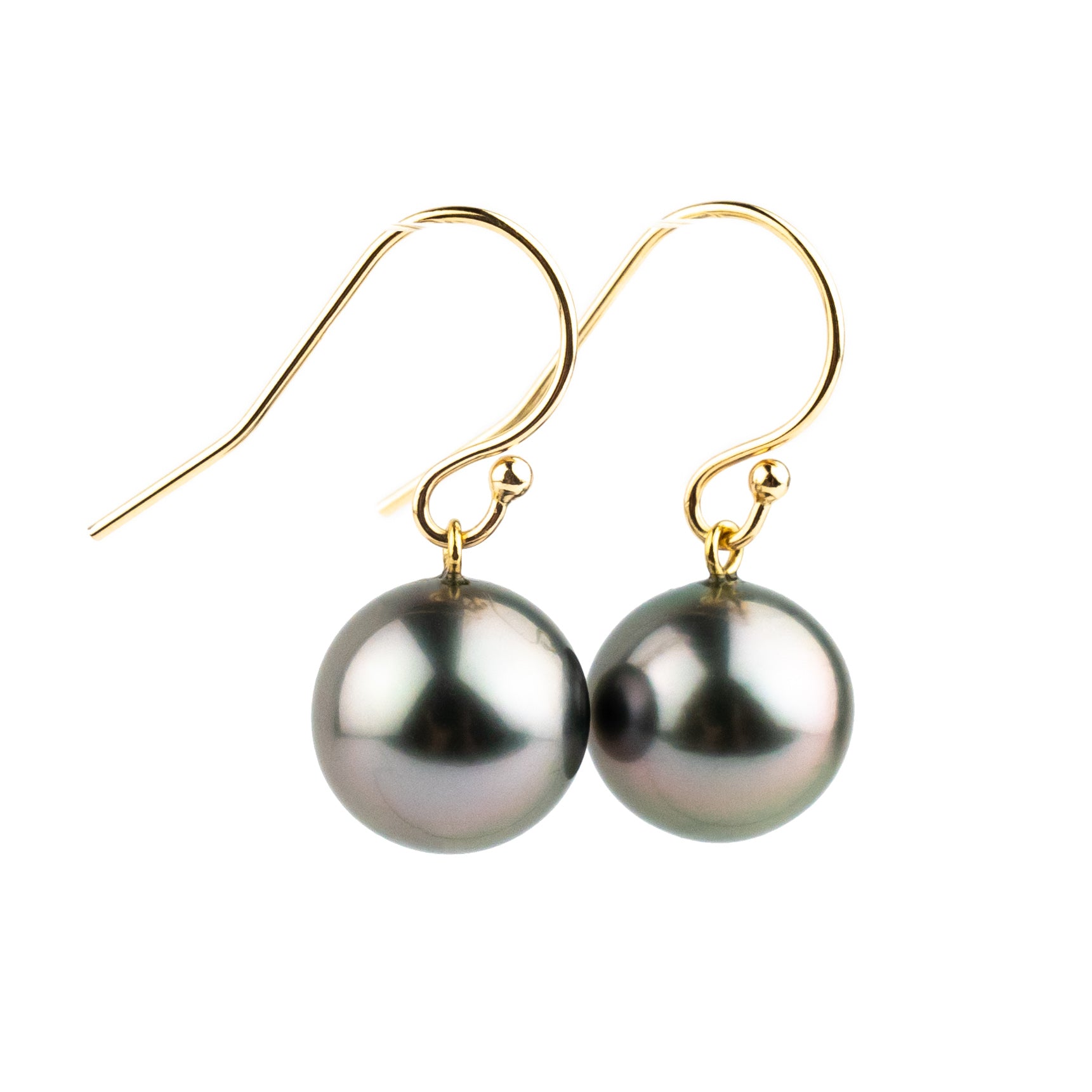These stunning, 10mm round, Tahitian pearls have incredible luster. They have are a glowing pink hue, with lavenders to their center, all surrounded by a green halo. There are minor imperfections drowned out by their coloration and luster.