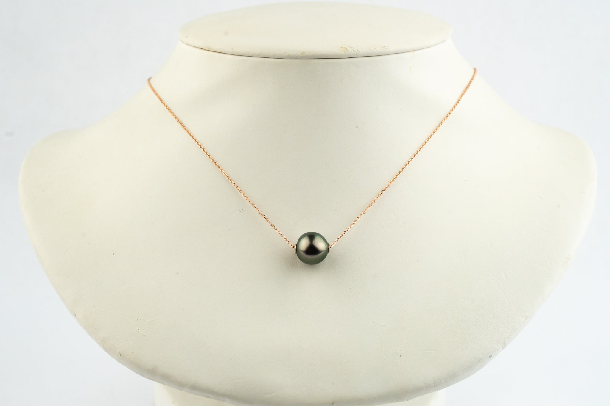 One of our most wearable designs, this feminine necklace features an outrageously lustrous, round, Tahitian pearl that measures 9.7mm in diameter.