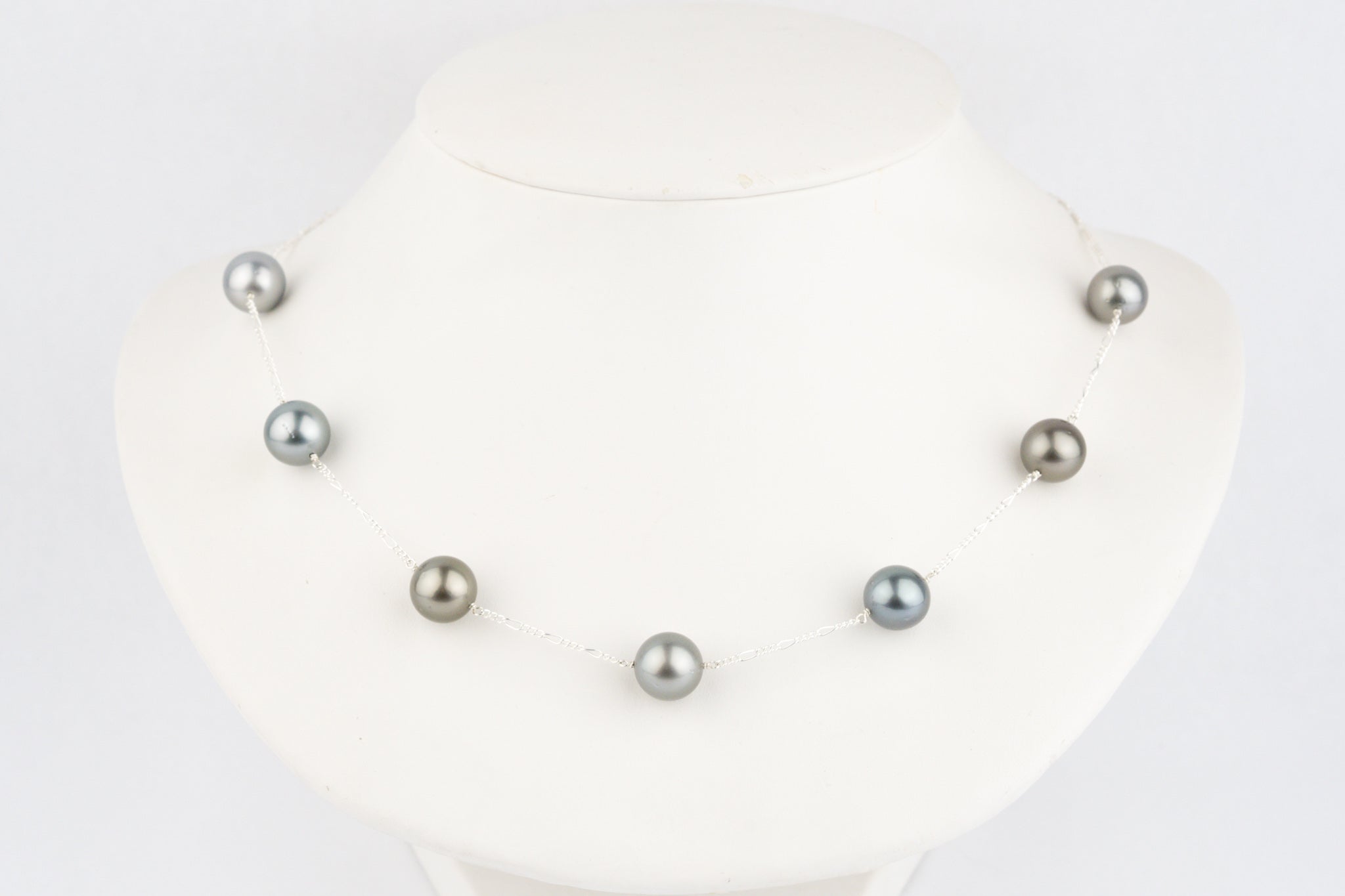 Silvery Blue Tin-Cup Tahitian Pearl Necklace on Sterling Silver